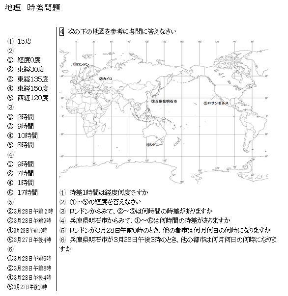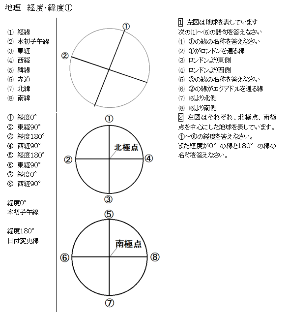社会地理 白地図 経度・緯度・時差